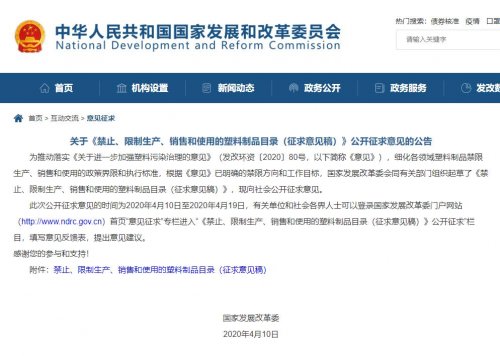 2020年4月,国家发改委推出关于《禁止、限制生产、销售和使用的塑料制品目录(征求意见稿)》,限塑令升级为“禁塑令”。按照“禁限一批、替代循环一批、规范一批”的原则,分2020年、2022年、2025年三个时间段,明确了加强塑料污染治理分阶段的任务目标。