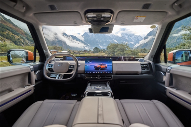 内饰方面,纵横G700将自然史诗与东方美学完美融合,以喜马拉雅山脉为灵感,通过珠峰8848等高线纹理、珠峰图腾徽章等设计元素,营造出一种“刚与柔的和谐之美”。车内大量采用360°环绕式软包覆,真皮仪表压印搭配高级麂皮顶棚,既保证了豪华感,又兼顾了实用性。相比之下,坦克500的国潮风格和豹8的未来科幻座舱虽然各具特色,但在材质选择和创新设计上,纵横G700显然更胜一筹。