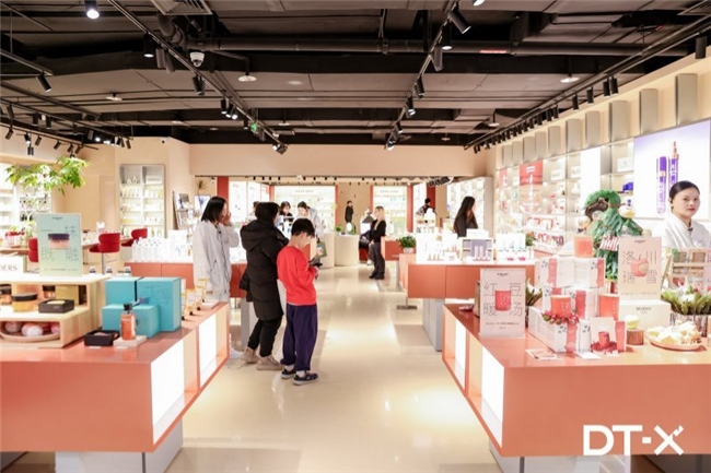 DT-X经营面积约6000平方米,汇聚美妆、时尚服饰、运动户外、家居生活、图书文创、高端超市及特色餐饮七大核心业态,全部采用自营模式运营。项目通过精细化动线设计与场景化陈列,将不同功能区自然衔接,在有限空间内实现消费体验的流畅与延展。